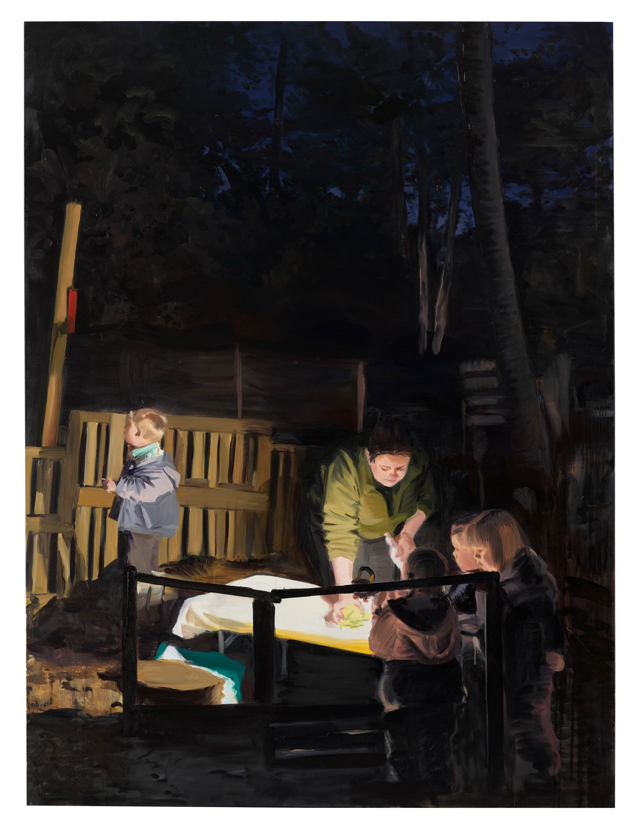 Caroline Walker, Nurture, 2024, oil on linen, 220 x 165 cm (framed). Installed at Ingleby, Edinburgh. Photograph: John McKenzie.