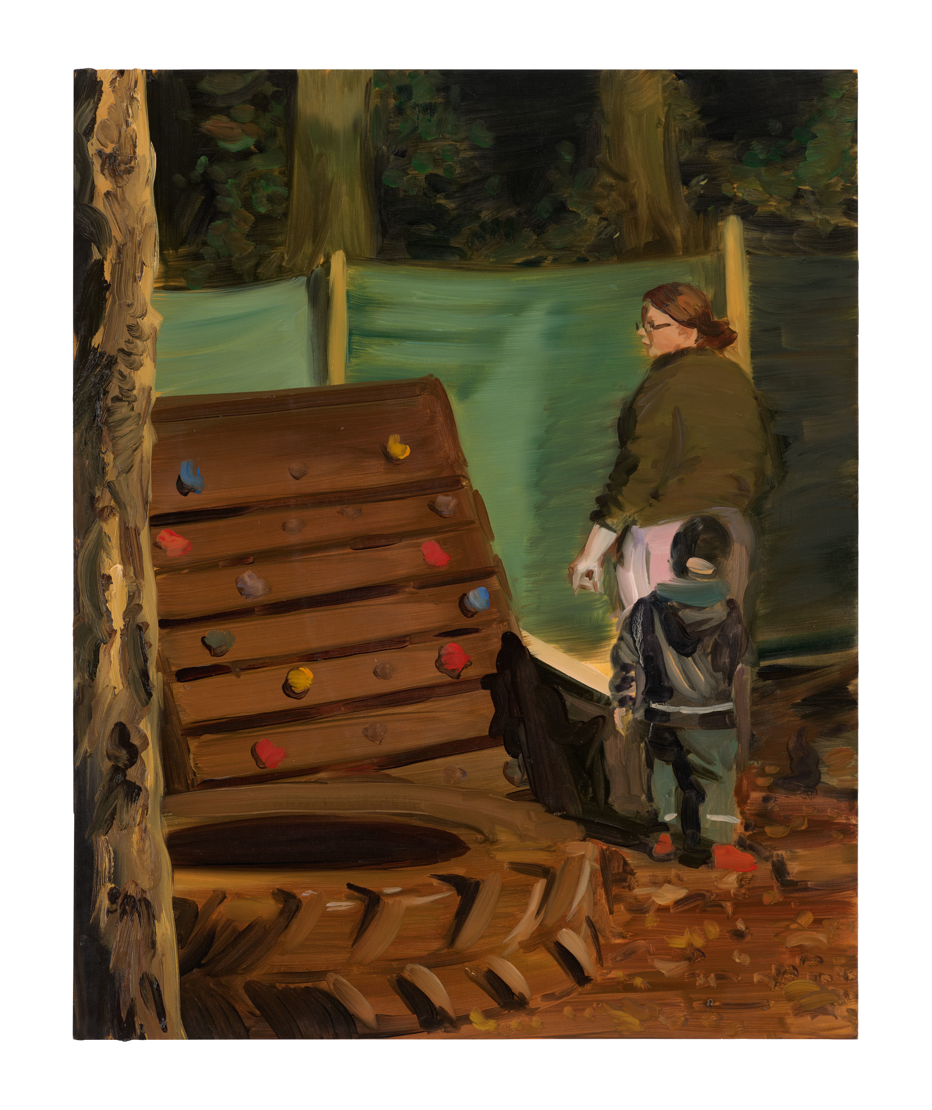 Over the past ten years Caroline Walker (b.1982) has become well known for her paintings of women, specifically, women at work in all manner of circumstances from the domestic scenarios of her own lived experience to more detached encounters in shops, cafés, offices and hotels. There’s a lineage here that connects to the domestic interiors of the Dutch Golden Age as well as to the everyday realism of Degas and Manet, the intimism of Vuillard and Cassatt, and the awkward voyeurism of Hopper. Whatever the context, Walker’s work offers the viewer a momentary glimpse into the lives of women, quietly revealing the complexities of their place in contemporary society as fleeting fragments of often invisible female labour take centre stage. Hers is a position of careful observer, drawing our attention to the often-mundane work that is instantly familiar, yet frequently unseen. Walker, who studied at Glasgow School of Art and at the Royal College of Art in London has recently moved back to Scotland and for this, her second exhibition at Ingleby, she has made a new body of work that turns its focus onto the rhythms, routines and everyday intimacies of family life. The show comprises oil sketches, ink drawings and oil paintings, in which we see the women who Caroline has encountered in this new phase of life – the nursery school teachers who spend their days caring for the children of others, the health worker who visits her baby son, the swimming pool teacher encouraging her daughter to swim, and – always in the background – the artist’s own mother, Janet, providing unflagging support. As always in Walker’s work the intimacy of personal reflection is all the more powerful for its universal resonance.