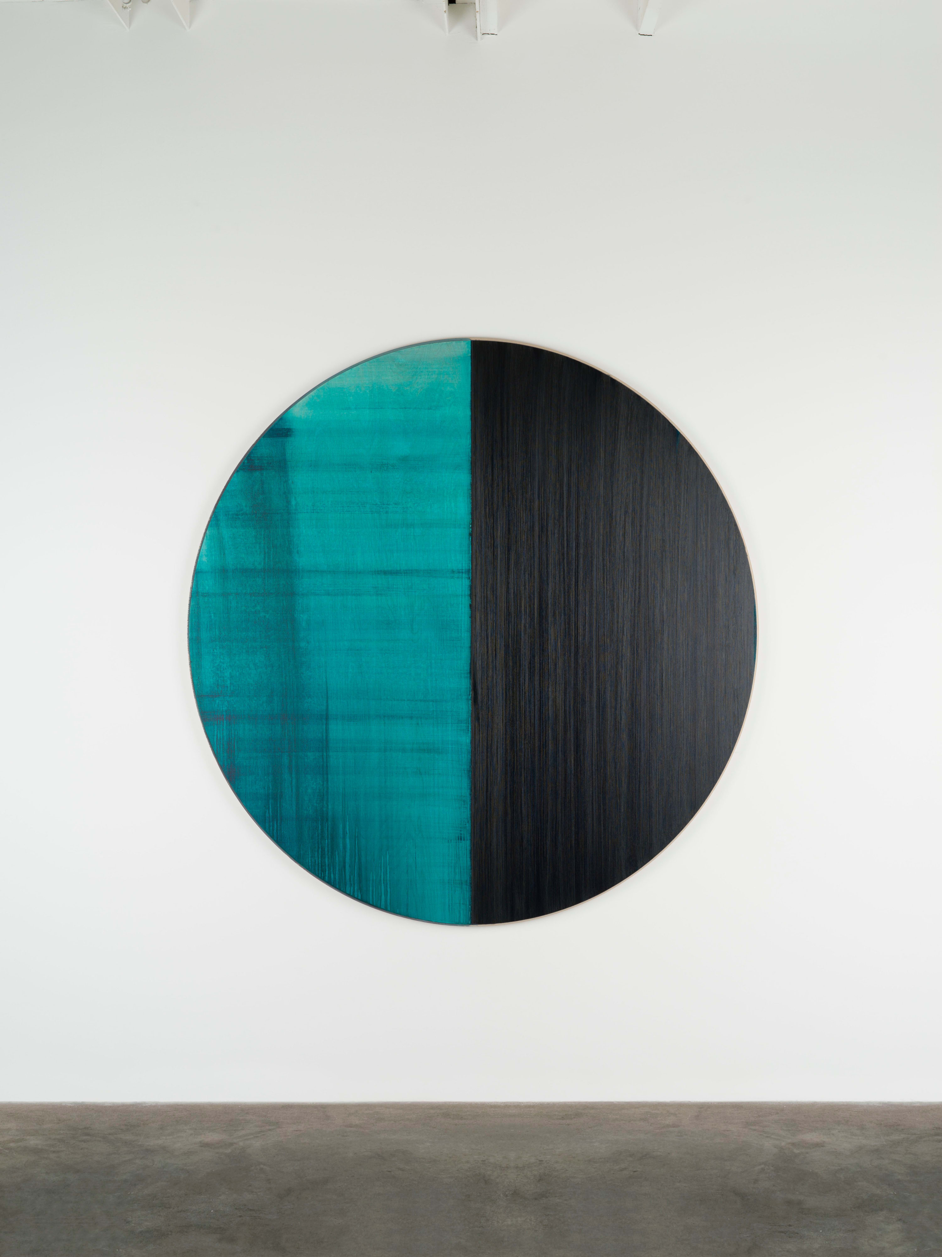 Frank WalterUntitled (Green land, blue-green sky)oil on biocomposite material, backed with Masonite22.4 cm diameter -