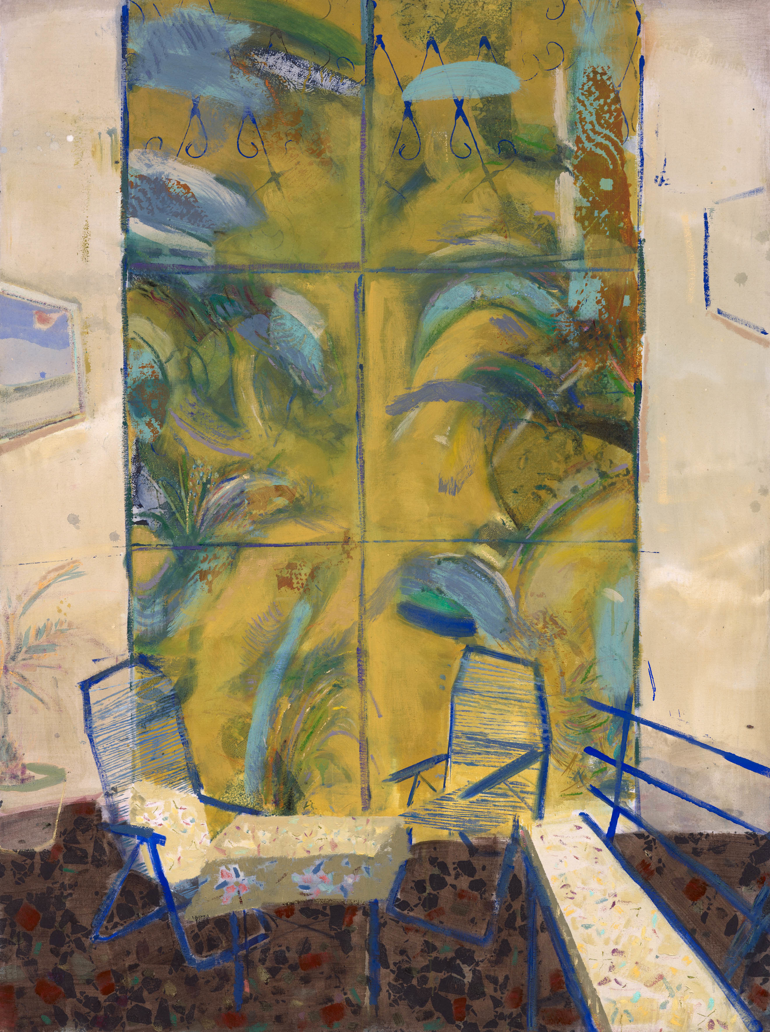 Nick GossTerrace, 2023Distemper, oil and silk screen on linen203.5 x 153.2 cm